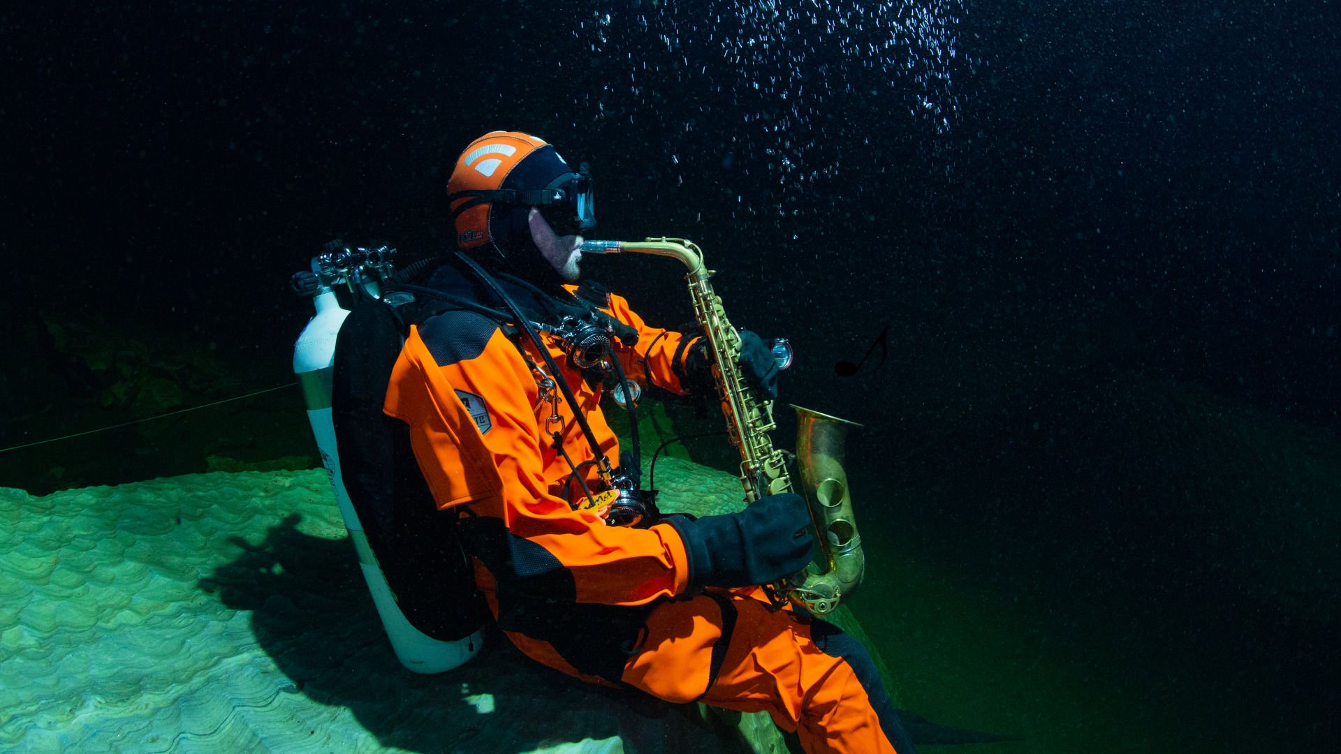 Divers highway into the Plura cave. These divers traveled all the way from Mexico to explore ice diving and cave diving combined.